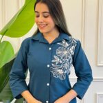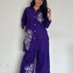 Crafted from soft pure cotton fabric, this outfit is breathable, lightweight, and perfect for all-day wear. The stylish button-down kurti with elegant embroidery design paired with a comfortable palazzo pant creates a modern yet effortless look.