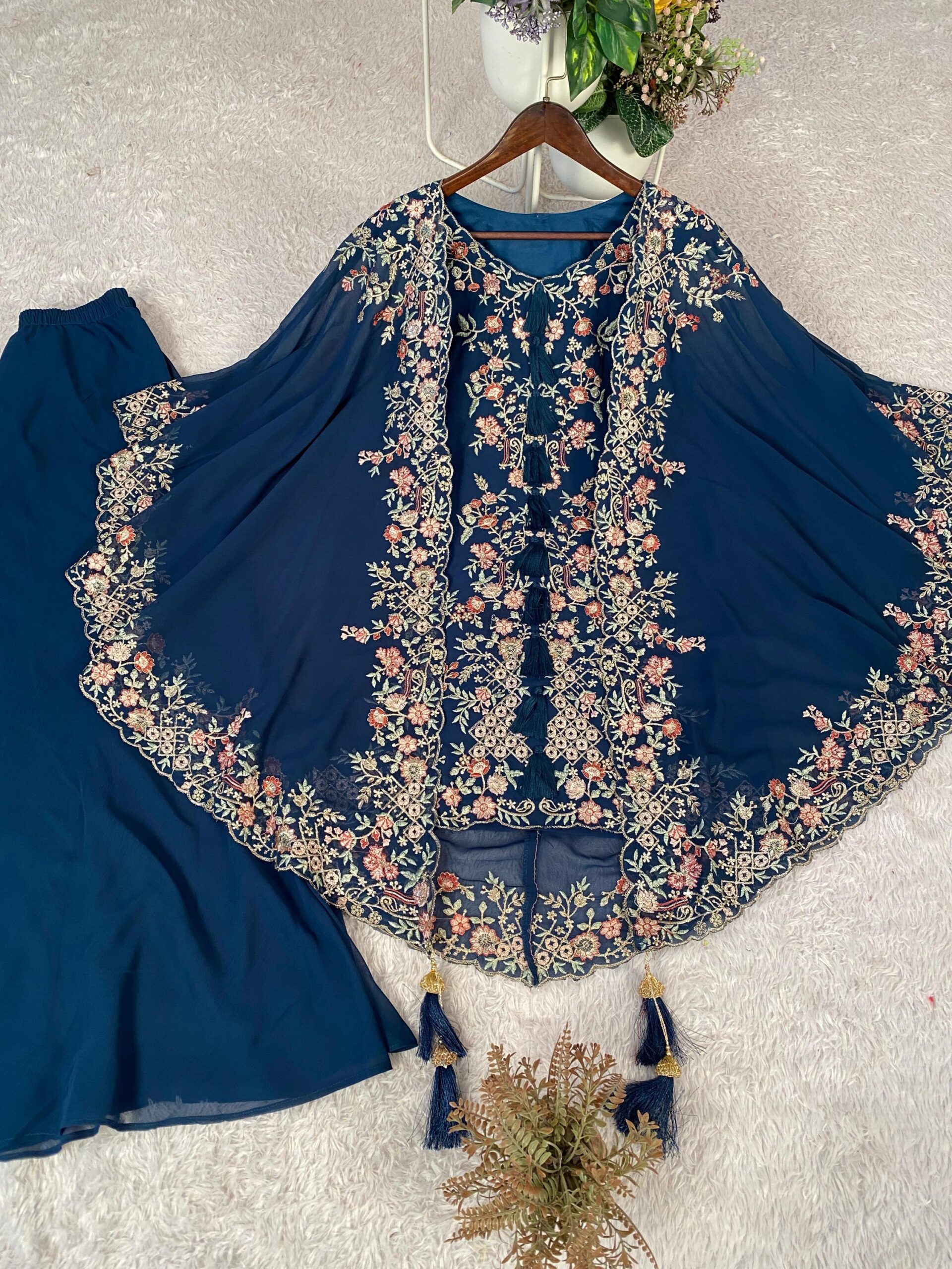 *DESIGNER WEAR KURTA PLAZZO PAIR WITH SHRUGE IN SEQUENCE EMBROIDERY WORK❤️*