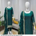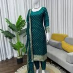 Top • Fabric: Heavy Fendy Silk • Lining: Soft Micro Inner • Work: Intricate Thread & Sequnce work • Lenght: 47 • Size: M(38), L(40), XL(42), XXL(44) With 3XL Margin ⸻ 👖 Pent • Fabric: Heavy Fendy Silk With inner • Work: Plain • Size: Fully Stitched | Fits up to Size 44 (Elastic Waistband) ⸻ 🧣Dupatta • Fabric: Heavy Fendy Silk • Work: Intricate Thread & Sequnce work • Length: 2.10 meters 🪶 Weight: Approx. 0.800 Grm