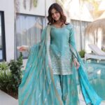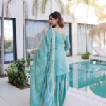 Aesthetic-Fit Chinnon Silk Zari Embroidery And 5mm Sequins Work Kurti Plazzo Set with Organza Dupatta Aesthetic-Fit Chinnon Silk Zari Embroidery And 5mm Sequins Work Kurti Plazzo Set with Organza Dupatta 52% OFF
