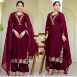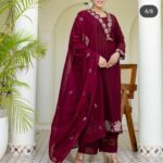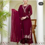 Women’s Premium Cotton 60×60 Embroidered Kurti Pant Dupatta Set – Party Wear Ethnic Suit